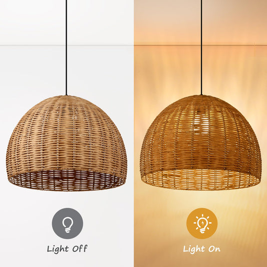 Arturesthome Hand Woven Rattan Pendant Lighting Fixture, 1-Light Bohemian Weaving Natural Ceiling Hanging Light, Farmhouse Coastal Chandelier for Kitchen Island, Living Room, Dining Room