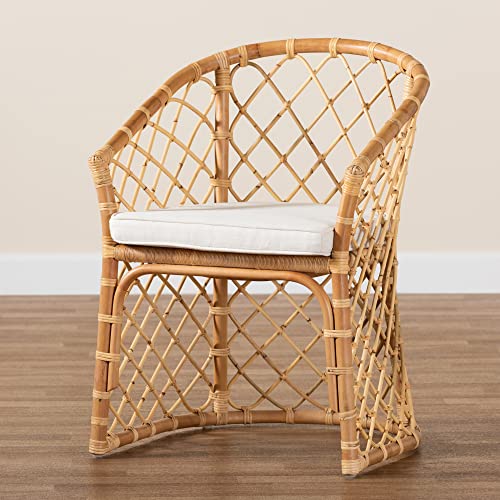 Baxton Studio Orchard Modern Bohemian White Fabric Upholstered and Natural Brown Rattan Dining Chair